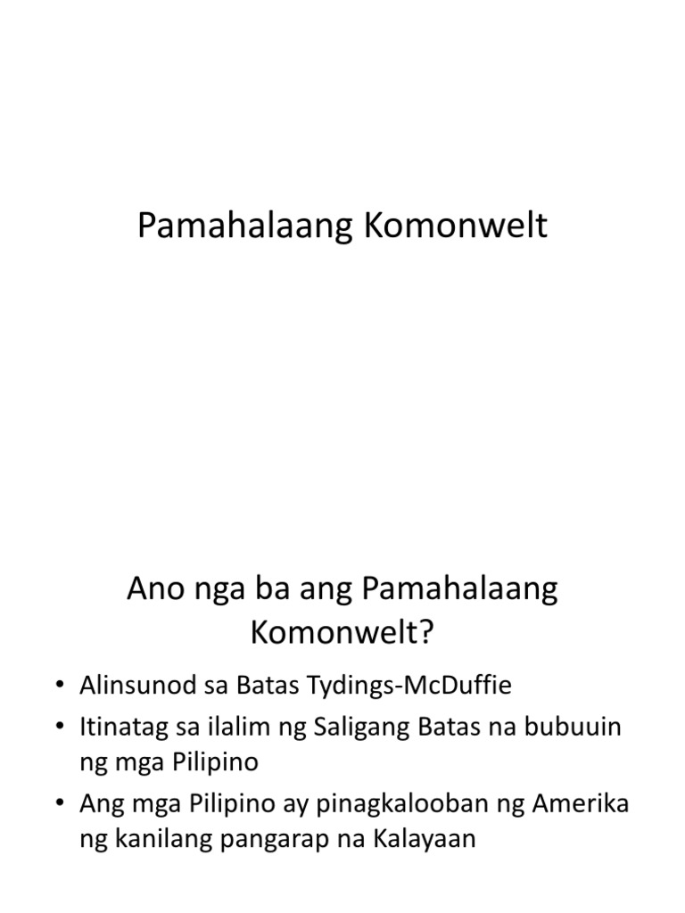 Ang unang batas na nagpatibay ng Pambansang Asamblea. Popular questions arrange the following events according to sequence. Bilang ng taon ng pamahalaang komonwelt.