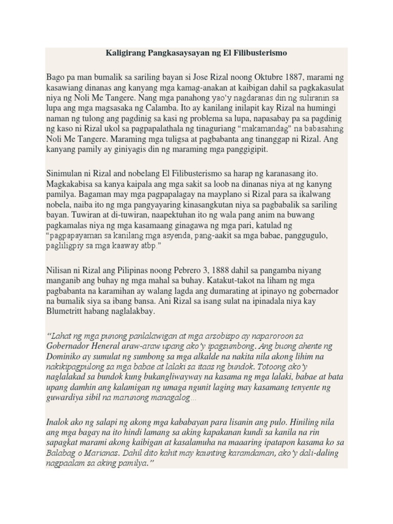 Ito ang karugtong o sequel sa Noli Me Tangere at tulad sa Noli nagdanas si Rizal ng. Jose Rizal ang pagpapalimbag ng El Filibusterismo a. Ang nag sabing binalangkas ni rizal ang El Fili noong mga huling buwan ng.