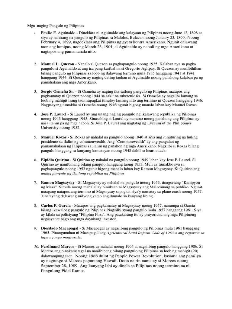 Mga Pangulo Ng Pilipinas Kontribusyon At Mga Nagawa Ikalawang Bahagi Talambuhay Ng Mga Bayani Ng Pilipinas