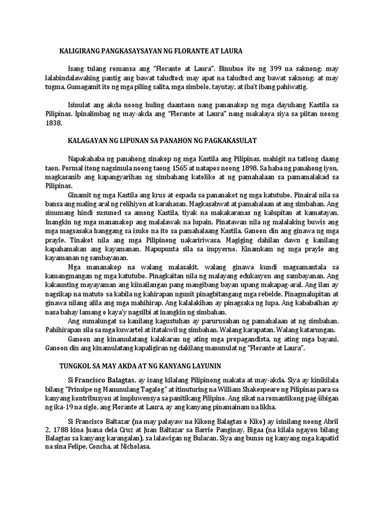 Ang kwentong ito ay isinulat ni Francisco Baltazar y de la Cruz o mas kilala bilang si Francisco Balagtas. Mbagal o banayad andante C. Ang mga aral na ito ay mauugnay ko sa mga ibat ibang kasalukuyan na isyu sa lipunan natin at ito ay ang aking rason kung bakit dapat panatilihin ang Florante at Laura sa kurikulum ng mag-aaral sa pangalawang taon sa mataas na paaralan.