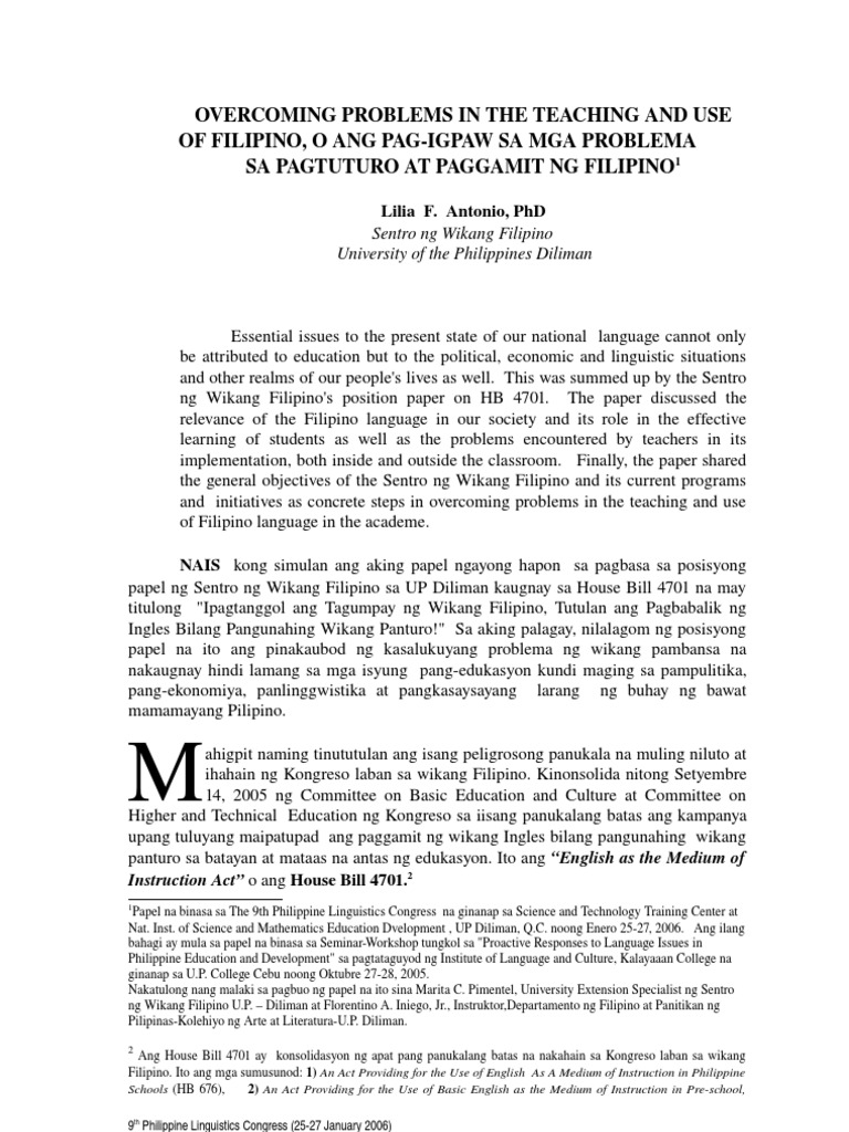 Overcoming Problems In The Teaching And Use Of Filipino