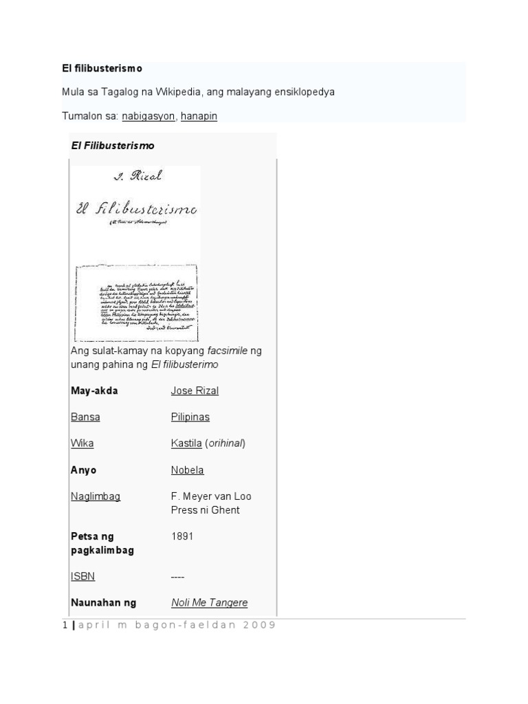 Taon ng pagkakalimbag ng el filibusterismo. Translation of El Filibusterismo Unang pagkakalimbag Notes. Nagsimula ito sa isang paglalakbay ng bapor sa pagitan ng Maynila at Laguna. Addeddate 2013-11-04 154510906957.