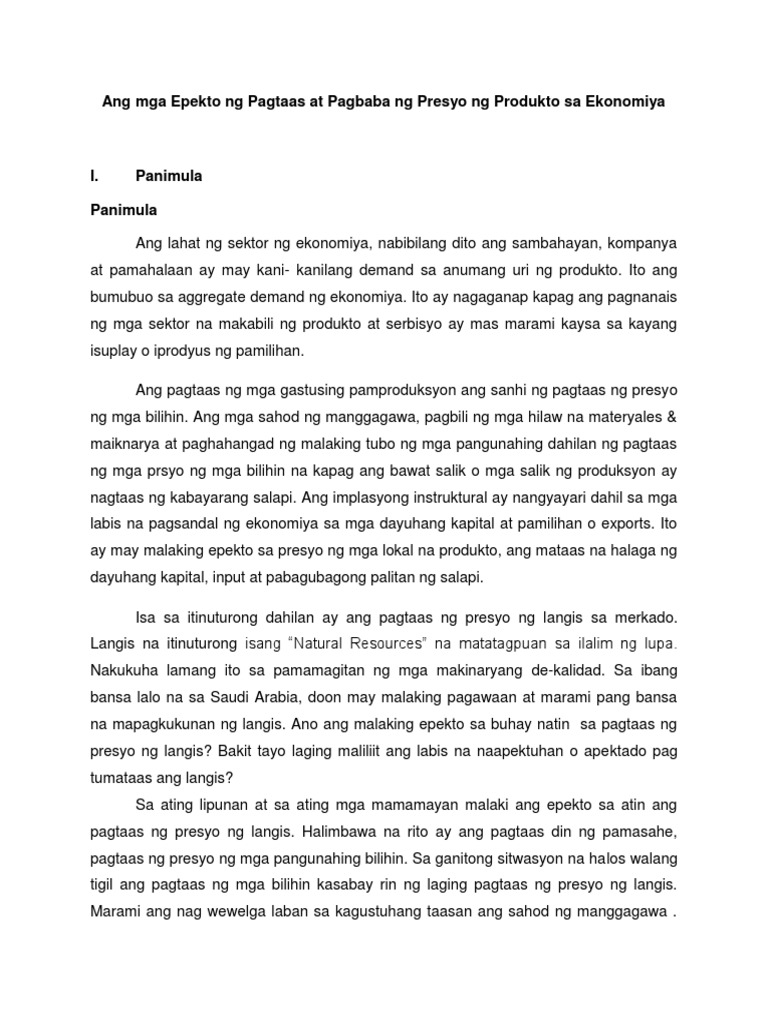 Pananaliksik Tungkol Sa Pagtaas Ng Presyo Ng Mga Bilihin Pananaliksik Tungkol Sa Pagtaas Ng Presyo Ng Gasolina