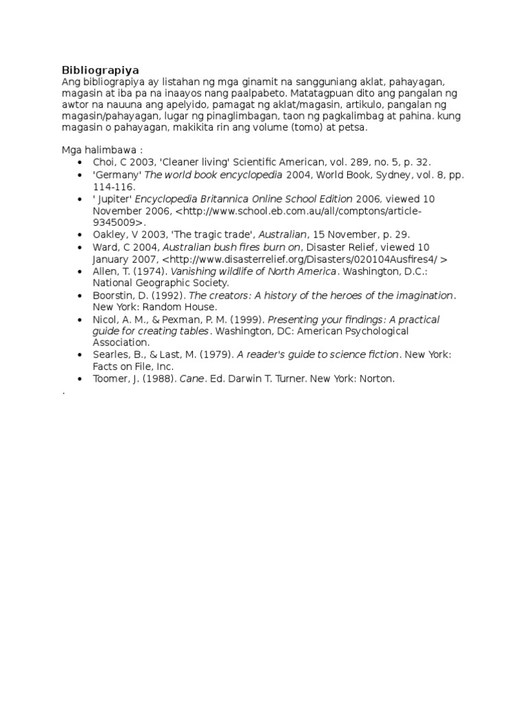 Ang Bibliograpiya Ay Listahan Ng Mga Ginamit Na Sangguniang Aklat Pahayagan