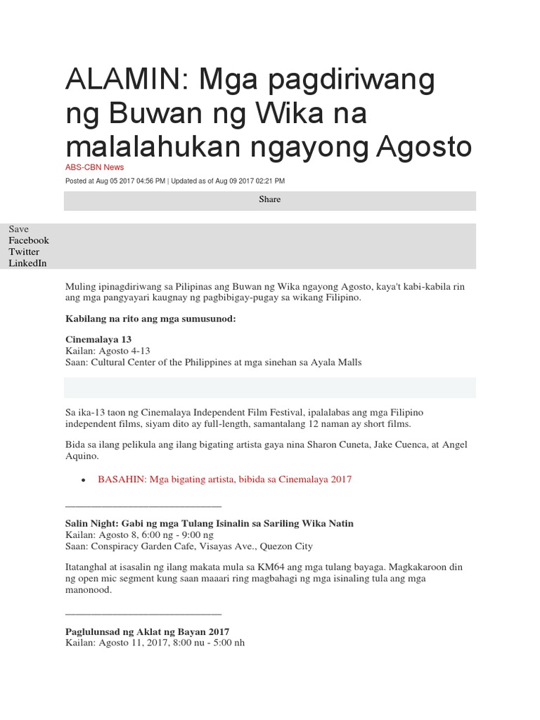 Alamin Mga Pagdiriwang Ng Buwan Ng Wika Na Malalahukan Ngayong Agosto Abs Cbn News